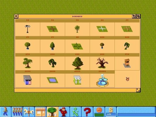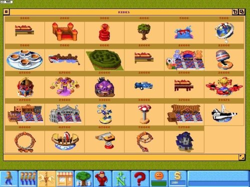 One of the other cool, more subtle features of the game is that the quality of people change depending on what kind of a park you’ve built. If your park is very safe and quiet, you’ll be seeing a lot of old folk wandering around. If it has a lot of dangerous and noisy rides then you’ll see younger thrill-seekers visiting. But typically the better way to go is to try to please as many people as possible – provide long, safe rides, have food and drinks nearby, and keep your park clean. Most of the fun of Theme Park is finding that balance that secures your park’s money-making future.