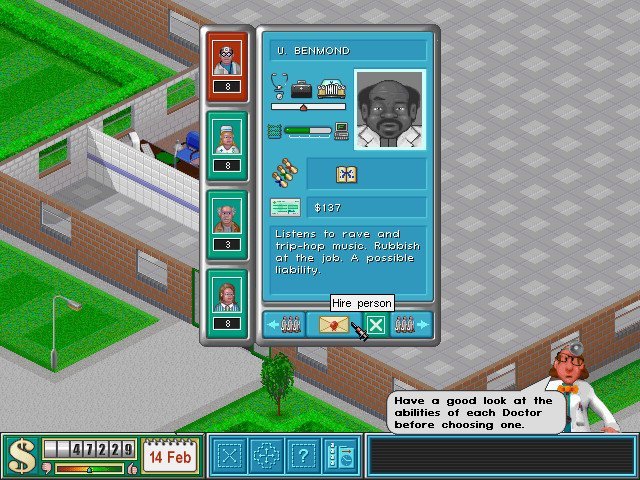 This game tries very seriously not to be taken seriously, and succeeds through the inclusion of humorous diseases and even more hilarious treatments. Take, for example, The King Complex. As tragic folks taken over by the spirit of Elvis himself (who took a hiatus from the grocery store tabloids just to grace this game), only the fine-tuned skills of a psychiatrist will meet the needs of these patients. Or Slack Tongue, caused by the excessive discussion of soap operas. Only cure? Chop the tongue off with quick, efficient, and painful ease.