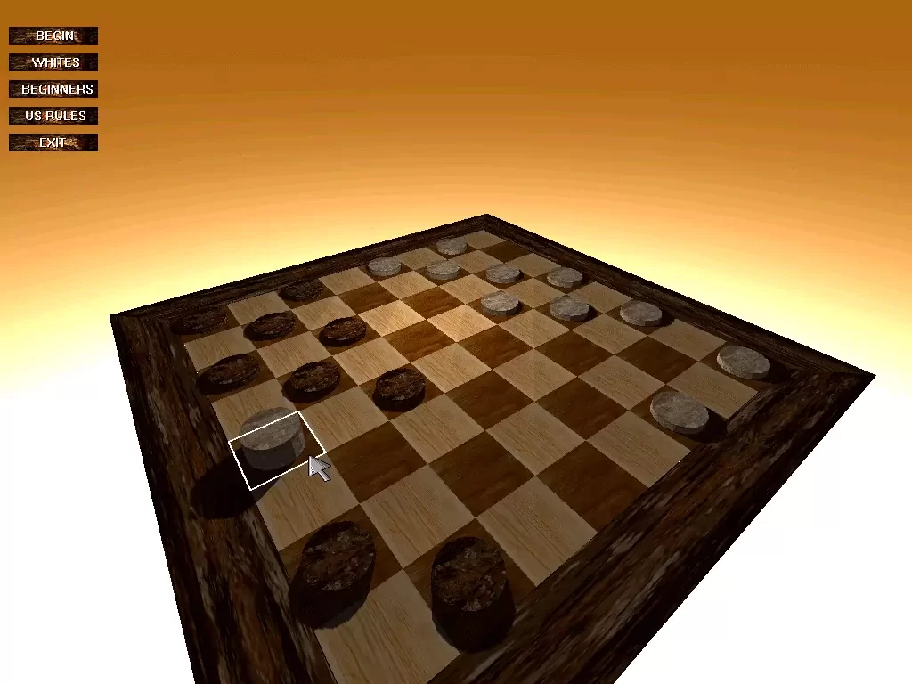 A realistic 3D Checkers game, featuring perhaps the most realistic 3D game board available in a computer checkers program. Tilt and rotate the board to play at any angle on this wonderful true 3D set. Try your hand at Classic American checkers, or one of two addition French Checker games which are played on a larger 10 x 10 board! A great program for the true Checkers lover.