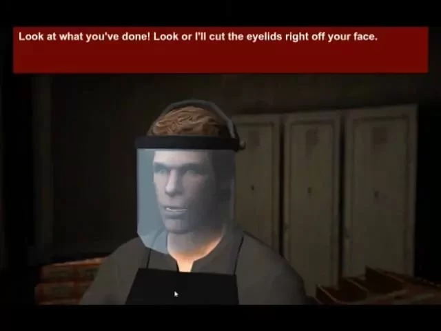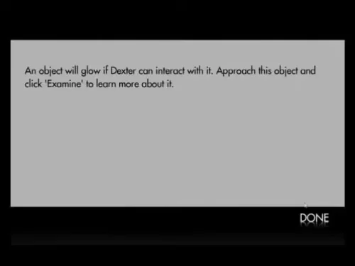 Michael C. Hall and some of the other cast provide voice work for their characters from the show. Dexter investigates several characters including a teacher whose choir boys are disappearing, the ice-cream truck killer who decapitates victims without any blood, and someone who is murdering women and uploading snuff videos on a website. These cases are variations of those on the television series. You can interrogate suspects using different dialogue options - aggressive, neutral or safe. More aggressive actions and dialogue will result in losing your Mask of civility and people treating you with suspicion. In some areas, you may have to use stealth to keep out of sight. The screen corners will be change from orange to red light if you are in danger of being seen. There are several mini-games throughout such as breaking into a computer, or recreating blood spatter patterns at crime scenes to find the weapon used and angle of attack. You will go through locations such as Dexter's apartment, the police department and crime scenes.