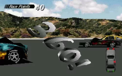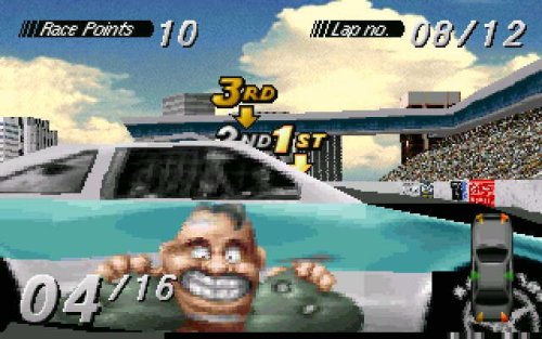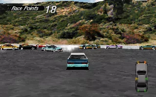 You probably feel like a crash test dummy when you're playing this game - it's not only a racing game, but you get points for wrecking your enemies! The amount of points you get depends on how you hit them ... e.g. you get more points for getting them do a 360 other than driving into their sides at high speed. The game has more to offer: a head to head mode with only two cars or the legendary destruction derby itself - a huge arena, every car starts at the edge of it, and then - have a nice crash!