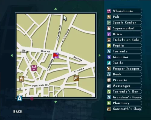Torrente has returned, both in film form and as a video game. Again one can fight crime in Madrid from first- or 3rd-person perspectives, but not a mere virtual Madrid: in this game, the streets of Madrid have been faithfully converted into game maps and the players can visit such authentic locations as the Puerta del Sol or the Plaza del Callao if they so choose.