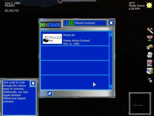 Airport Tycoon 2 is the sequel to Airport Tycoon, and as such is a simulation of the construction and management of an Airport. Elements such as location, weather, volume of customers, dispostion of customers, business contracts and disasters will be simulated. Improvements and additions to the original game will include a more elaborate instruction manual, a more user-friendly tutorial system, better graphics, more music and sound effects, simpler, more uniform interface, refined and simplified game play, fewer but more unique locations, an improved camera system, new and interesting disasters, and a condensed Aircraft list. AT2 will use a far better engine that will support better visuals and game-play then the first.
