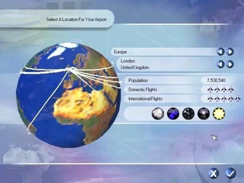 Similar to other games of this type, players take on the role of an airport manager. Players first select a location for their airports from several cities around the world. Players then constructs a terminal for passengers, then runways, tarmac, control towers and support services.