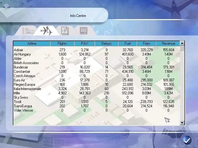 Players then attracts businesses to their airport by signing contracts with vendors in the terminal and contracting flights into and out of the airport. Players also manage the airport's budget, which cannot operate at too much of a loss. Players can operate passenger airports and cargo airports with different considerations for each.