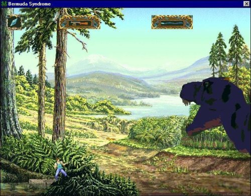 Game explores the phenomenon of the Bermuda triangle, where many aircraft and ships had disappeared, this is why the game name is Bermuda Syndrome. The first thing you notice, that this game is very similar to the legendary game Flashback, it looks rather like a continuation Flashback, but it's not Flashback. Even though the game has all the signs: the movement of the characters is well animated, gorgeous graphics, high quality sound effects and music, and the use of objects is very similar too.